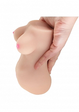 Shaped into a full (small) torso complete with big jiggly breasts, a pink-lipped pussy and a pretty little butt hole, this premium masturbator features a snug, textured inner channel engineered to feel as close to real as (in)humanly possible.