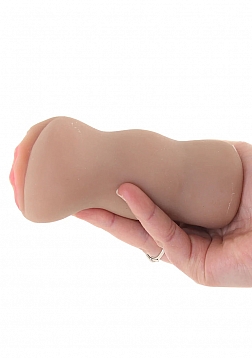 Starting off with a perfect replica of Jenna Fox 's pussy, the plushy, squeezable interior is bouncy and clingy, gripping tight all the way through a multi-textured inner tunnel. It warms up naturally as you stroke away, but for a hot touch right from the start, just soak it in some warm water first. Open ended, Jenna is easy to clean. For a natural suction effect, cover the back opening with a finger to feel her suck you deep inside.