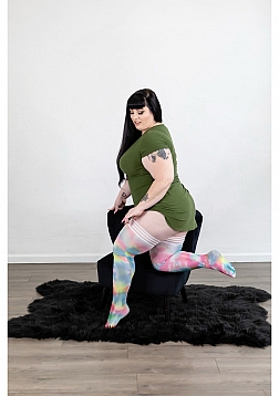 Stand out with Kix'ies trendy tie-dye thigh-highs and add a unique and fun kick to any outfit! The Gilly thigh-high is multi-colored rainbow tie-dye. Perfect for layering under jeans, skirts, shorts or dresses and great for dancers and festival-goers! Kix'ies thigh-highs are designed for all-day wear, with a no-slip-grip. We offer Petite to Plus Size Stockings and are the #1 thigh-highs that actually stay up!