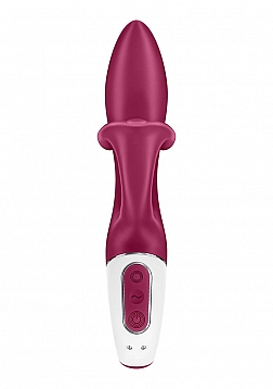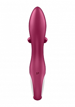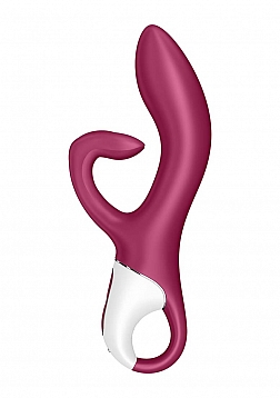 Embrace your desires with the boldly beautiful Embrace Me. Very flexible, use the looped handle to easily experience supreme G-Spot and clitoral stimulation. Built for pleasure connoisseurs, the Embrace Me provides dual and upside-down stimulation through its 2 powerful motors. Different from regular rabbit vibrators, the Embrace Me provides intensified stimulation from above, rather than below. Use the big shaft with a pointed tip for extremely targeted stimulation. The clitoral tickler features 3 nubs for broader stimulation of the clitoris and labia. With the +/- buttons controlling the motor that powers G-Spot stimulation, and the ~ button to separately control the motor dedicated to clitoral stimulation, easily sift through 12 individual functions per motor to find your ideal pleasure! The Embrace Me is made of body-safe silicone, is rechargeable and waterproof (IPX7). Come Embrace Me.