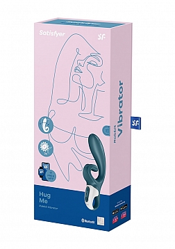 Hug your curves and edges like never beforeÂ… With the hungry-to-please Hug Me, mimic oral pleasure with a tongue-like tip while you quench your internal desires. Very flexible, use the looped handle to easily experience supreme G-Spot and clitoral stimulation. Built for pleasure connoisseurs, the Hug Me provides dual and upside-down stimulation through its 2 powerful motors. Different from regular rabbit vibrators, the Hug Me provides intensified stimulation from above, rather than below. The Hug Me has a big shaft with a slight edge, as well as a small clitoral tickler with a tongue-like shape. Bluetooth enabled, the Hug Me connects to the award-winning, free, Satisfyer Connect app, giving you the option to have complete control the powerful motor and truly customize your pleasure. The Hug Me is made of body-safe silicone, is rechargeable and waterproof (IPX7). Come Hug Me.