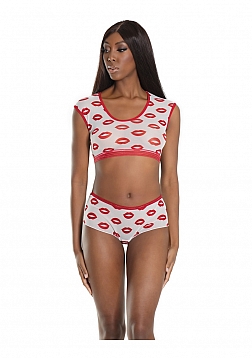 CROP TOP AND SHORTS WITH LIP PRINT - ONE SIZE