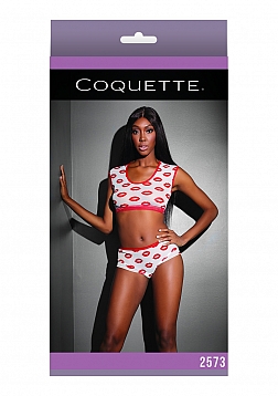 CROP TOP AND SHORTS WITH LIP PRINT - ONE SIZE