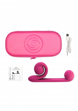 The vibrating power of a massage stick, the insertion depth of a dildo and the double stimulation of a rabbit vibrator. The Snail Vibe is a versatile sex toy that can be enjoyed alone or with a partner. For a classic vibrator experience, hold back the flexible clitoral stimulator or apply the intense vibrations externally to the clitoris or any other area of the body where massage is desired.The multipurpose vibrator has 2 powerful independent motors, 1 for clitoral stimulation in the spiral head and 1 for inner pleasure at the tip of the shaft. Unlike traditional rabbit vibrators, the Snail Vibe's revolutionary patented spiral head design ensures the clitoral stimulator maintains a continuous connection throughout use.INCLUDED IN THE BOX - Snail Vibe, protective case, charging cable, instruction manual.
