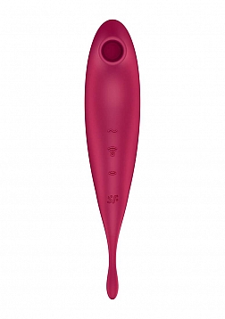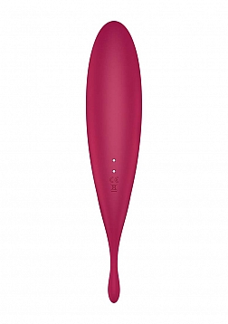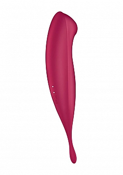 Two superstar functions, one convenient device… Welcome to the wonderful world of hybrid Air-Pulse vibrators, with the all-new Twirling Pro! Take the powerfully targeted power of a tip vibrator, combine it with revolutionary Air-Pulse technology, and get a vibe that can do it all. Best suited for beginners, let the Twirling Pro show you the ways of pleasure. With multiple, easy to use functions, and a curved shape with a rounded body, learn what you like! Great for stimulating all erogenous zones, the targeted, slightly flexible, circulating tip allows you to key in on your favorite spots. With two independently controlled motors, explore 11 different pressure wave intensities as well as 12 vibration settings with the intuitive control panel. The Twirling Pro is made of body safe silicone, is rechargeable and waterproof (IPX7). Twirl yourself into a tizzy today!