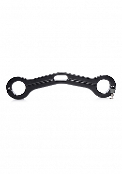Keep your slave helpless to your every desire with a wicked device that binds those pesky wrists to those pathetic balls! This unique Humbler locks onto your playthings scrotum in front of their body, while keeping their hands out of your way so that you can do your worst! Curved to fit in the crook of their crotch with balls distended forward, this device will apply a vicious tug anytime they try to move their hands. They won't be able to shield themselves from your gaze, impact play, or any attention you might bestow upon their vulnerable cock! A hinge at one end makes it easy for you to open and close the Humbler, while the other end locks shut so that your slave has no hope for escape.