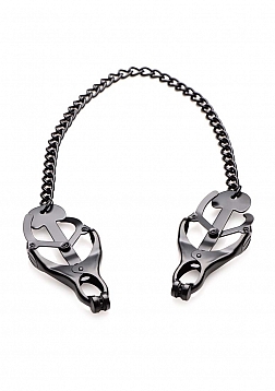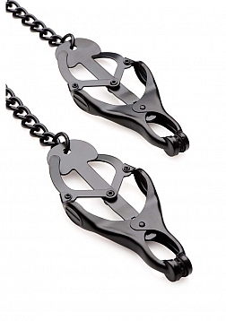 A timeless classic. The Monarch Nipple Vice provides a light initial sensation...until the chain is pulled. They become increasingly harsh as more tension is added to the chain. The clover-style mechanism gives the Monarch a tight and unyielding grip on sensitive flesh. Ideal for solo play or with the one you want to dominate.