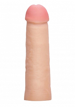 Slide into the Mega Penis Enlarger Sleeve and your size will be massively increased! This thick, stretchy, ultra realistic sleeve fits snugly around your shaft for extra staying power and an instant size boost, no creams, pills, or devices needed. The end is a solid extension that gives you another 2 inches in length! The Mega Enlarger Sleeve features thick walls of ultra realistic material that will add nearly another inch to your girth as well! This lifelike rubber is firm, yet squeezable, just like the real thing! For a custom fit, the bottom can be cut to size with a pair of scissors. Remains securely in place, with a hollow shaft that provides a snug fit. Guaranteed to add thickness and length and as easy to use as a condom, use the Mega Enlarger Sleeve today and enjoy your new longer, thicker, bigger rod!