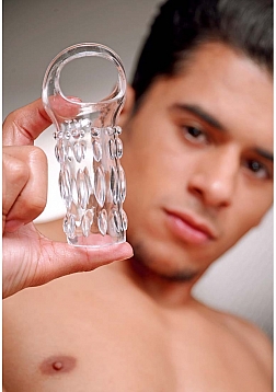 Try this on for size! This thin, textured cock sheath is perfect for the man on the go. Now you can slip into instant erection enhancement, with no waiting, pills, or creams! The outer texture stimulates your lover with every thrust, and provides a subtle girth boost on any size. The stretch to fit design is open ended, designed for every man in mind. You can enjoy more intense climaxes and longer lasting performance with enhanced blood retention. Just slip the band behind your balls and slide the shaft onto your own. The extra strap ensures extra enhancement, and helps it stay firmly in place no matter how tight the hole or how hard you pound. The clear, stretchy TPR lets you shine through and will match any skin tone for the most universal fit and feel available.