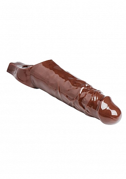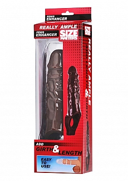 AMP UP your size and girth with this doubled up erection enhancer! Made of TPR material, so it is stretchy enough to fit over most cocks. Simply slide your rod into the sheath and fit the attached ring behind the testicles. Once in place, this durable enlarger will assist in greater partner satisfaction and an instant size boost with no pills or creams to worry about! Adds length and girth for them, and lined with internal sensation bumps for you. Get your ideal rod with the Really Ample Penis Enhancer.