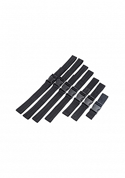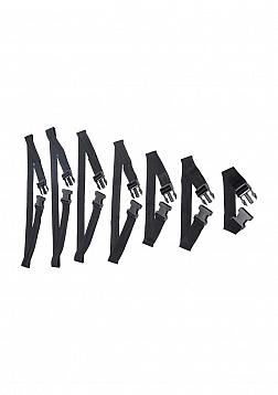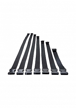 Restrain your partner with seven body straps in varying lengths. Each one adjusts to tighten around your lovers prone body, allowing you to customize their captivity. The easy-to-use buckles create a convenient bondage as your plaything is wrapped from shoulders to ankles, effectively immobilizing them so that they are entirely at your mercy!