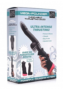 Experience ultra-powerful pounding action with this hand-held thrusting dildo. Discover the 2 intense speeds from the industrial motor, for up to 200 thrusts per minute. Pummel yourself or your partner with the defined ridges and veins of the realistic dong! You have never been banged like this before... The 6.75 inch dildo attachment is made of non-porous and phthalate-free silicone. While it is not compatible with silicone lubricants, it is easily sanitized with mild soap or toy cleaner. An additional dildo attachment is included that is flexible to be bent into the perfect angle to target your favorite parts! Further care instructions are included.