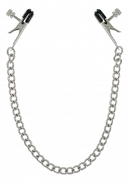 Attached to a single chain, once these bullnose style clamps are affixed to the nipples of your plaything, you can control just how much pleasure or pain they deserve. Simply adjust the level of intensity by turning the screw located near the tip of the clamp. Tips are coated in vinyl for added comfort and safety.