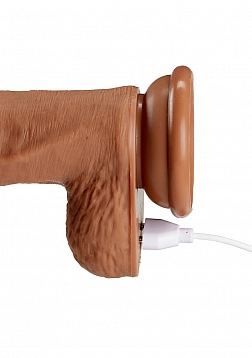 The Cloud 9 Pro Sensual 7" Swirl Thrust vibrator features dual motors with (7) vibration functions and (7) exciting thrusting, swirling functions. This product also comes with a remote control for hands-free or partner play, with a usable distance of 50ft. Strap-on compatible, USB rechargeable, and IPX4 splash proof only.