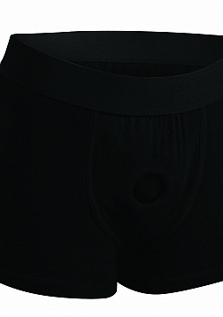 Combine the comfort of boxer-briefs with the functionality of a built-in strapon harness for ultimate versatility! This breathable, cotton and spandex blend underwear is snug fitting with room to move, stretch and play! This Active Style Harness is particular good if you want to be able to pop your strapon dildo into place without having to change clothes, strip down, or adjust lots of harness straps. Just pop the dildo in and you're ready to go! The underwear has a thick, supportive elastic band that helps carry the weight of some heavier dongs, and a stretchable O-ring in the front that fits and adjusts to fit most dildos. After you're done satisfying you're partner, your boxer-brief pair is easily washed on a 'cool' setting in the washing machine!