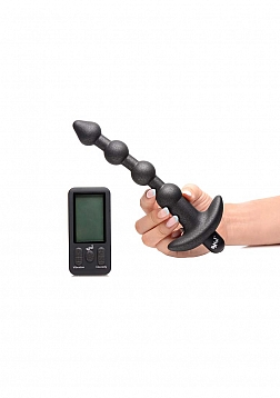 Bang your booty with these powerful metallic silicone anal beads! Velvety smooth and flexible enough to keep your anal play comfortable, these supple balls are fit for both anal beginners and experts alike. The tapered tip makes insertion while the wide base prevents these anal delights from going too far into your backdoor. Control your vibes with the push of a button or with the included wireless remote control! The illuminating LCD display remote allows you to view exactly what intensity level and vibration pattern you are on even in the dark. With 5 different vibration patterns and 5 intensity levels you can mix and match for a combined 25 different combinations of play, giving you plenty of options with when the mood strikes. The added remote is great for solo use or exciting partner play! The powerful motor found in the bullet vibe is rechargeable for endless fun - simply insert the USB charging cable when the power runs low to recharge. Enjoy each and every bead of this accessible anal toy with your favorite water based lubricant! This sultry set of beads is perfect for anal training, improving your masturbation sessions, or for kinky couples who need a buzz in their butt while they perform naughty acts together.