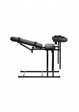 Ask your partner to climb up into the chair and try it out. Adjust the leg height and the chair backboard angle for the, and adjust any other positions and heights for yourself, as well. Once you've got the settings out of the way, bind them with the straps and buckle them in. Tease and torment them with pleasure and pain while they writhe in agony and ecstasy! Use floggers, nipple clamps, ticklers, vibrators and more while they're bound and secured, ready to receive. If you're solo and want to enjoy it yourself, strap yourself in and enjoy the support that the leg boards offer so you can really enjoy being spread wide as you play with yourself in your sexy bondage chair! Take it up a notch and combine this with the Dicktator Extreme Sex Machine and get pounded while your on your throne!