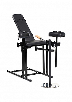 Key Features: Adjustable Back Rest: Sit up or lean back with this adjustable back rest. Strap your partner in and move them up or down for the perfect angle! Plush, Comfortable Pads: Perfect for long sessions, these plush pads are super comfortable and cushion against hard thrusting or movement. Heavy Duty Frame: Get a frame that can handle rough play! This heavy duty frame is made of metal and wood so it holds up as a durable piece of furniture. Quick Release Buckles: The ABS plastic buckles are easy to release for when you partner needs to sit up, readjust, or pause the scene. D-Rings to Attach Bondage Accessories: Attach wrist cuffs or other bondage accessories to the D-rings to add another element to your play! Compatible with the Dicktator Extreme Sex Machine: While this item is not included in purchase, this chair is perfectly paired with this satisfying sex machine!