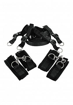 Portability allows you to turn any bed into a sexy restraint Adjusts to fit any size mattress Can be arranged to work with multiple restraint positions: on back, on stomach, hog-tie, etc.