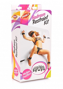 The Frisky Bedroom Restraint Kit is portable and easily restrains with H-shaped straps that fit underneath any size bed and reach around to securely cuff ankles and wrists and restrict movement. The sturdy Neoprene cuffs are soft and comfortable, yet close securely with heavy duty Velcro. Swivel clips attach the cuffs to straps underneath the mattress. Enjoy putting your partner in compromising positions as you tease and please them until you decide they are released!