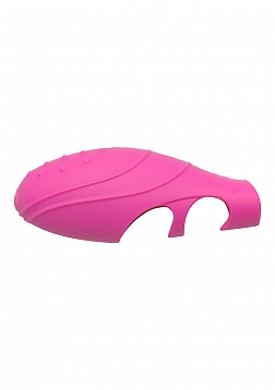 Slip her the finger with this sexy vibrating stimulator from Frisky! Ergonomically shaped for ultimate stimulation. Whether tantalizing her clit or aiming for her G-spot, this demure vibe will do the trick. Just insert the mini bullet into the inner pocket and slip your finger through the stretchy loops. The power button is on the outside which lets you turn the vibration on and off with just the push of a button. Made of premium silicone and textured for extreme pleasure. Cleans easily with soap and water.