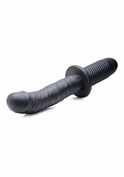 The Large Realistic - Silicone Vibrator with Handle - Black