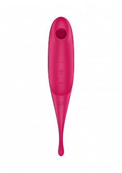 Two superstar functions, one convenient deviceÂ… Welcome to the wonderful world of hybrid Air-Pulse vibrators, with the all-new Twirling Pro! Take the powerfully targeted power of a tip vibrator, combine it with revolutionary Air-Pulse technology, and get a vibe that can do it all. Best suited for beginners, let the Twirling Pro show you the ways of pleasure. With multiple, easy to use functions, and a curved shape with a rounded body, learn what you like! Great for stimulating all erogenous zones, the targeted, slightly flexible, circulating tip allows you to key in on your favorite spots. With two independently controlled motors, explore 11 different pressure wave intensities as well as 12 vibration settings with the intuitive control panel. The Twirling Pro is made of body safe silicone, is rechargeable and waterproof (IPX7). Twirl yourself into a tizzy today!
