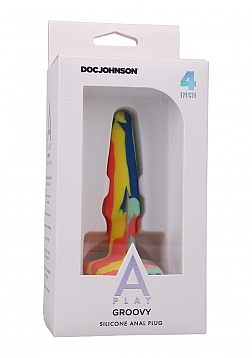 The A-Play Groovy is a soft multi-colored anal plug made of health-grade silicone. Its tapered tip and wide base make for safe, comfortable play, and its firm-yet-flexible feel allows for a little wiggle. Each plug is unique and has its own variation of the color pattern.