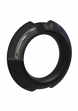 For something strong yet flexible, this 43mm black cock ring combines the extreme feel of a stainless steel design with the precision fit of durable silicone. Featuring an open-sided metal ring sheathed in a sturdy, stretchable band of premium silicone, this design strikes the perfect hard/soft balance of stretch and rigidity. A beveled edge intensifies the pressure in all the right places to complete the experience.