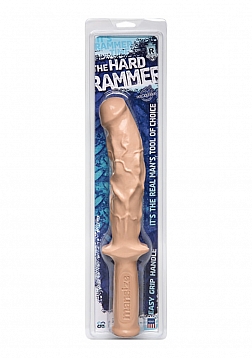 This impressively large realistic dildo has a highly textured veined surface, a sturdy handle, and and has a soft yet firm feel. With 9" of insertable pleasure and a hefty girth, The Hard Rammer is not for beginners. For the more seasoned user, however, this realistic wonder is sure to fulfill every need. The handle is perfect for self use, and ideal for partner play as well. This toy is phthalate-free and body-safe.