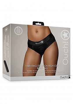 The Vibrating Strap-on High-cut Brief sits high on the thigh into the hip.