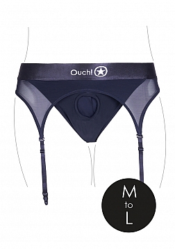 Vibrating Strap-on Thong with Adjustable Garters - M/L