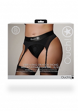 Vibrating Strap-on Thong with Adjustable Garters - XL/XXL