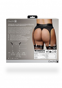 The Vibrating Strap-on Thong with Adjustable Garters fits like a traditional thong with the added bonus of garters to add to the sexy fun.