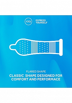 Perfectly sized to suit most men, EXS Ribbed and Dotted are 56mm wide and boast a comfy flared teat. They allow for a natural movement without constricting the penis. These condoms are made from natural latex and offer a smooth, silky feel on the interior. Suitable for people with sensitive skin.