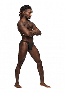 From the Male Power Magnificence collection this style includes a Jock with a cut out window on the waist, decorative metal grommets, and a slim, stay put plush elastic waistband. Butt boosting plush elastic leg bands.