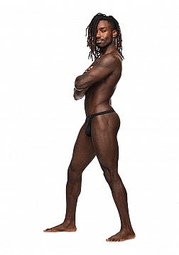 From the Male Power Magnificence collection this style includes a Micro V Thong with a cut out window on the waist , decorative metal grommets, and a slim, stay put plush elastic waistband, with a V shaped fabric insert in t-back.