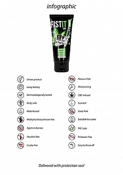 | EAN CODE: |  | 8714273935625 |  Water-based lubricant. Contains the active ingredient CBD (Cannabidiol). Suitable for use with latex condoms. Dermatologically tested, fat-free, colourless, odourless and tasteless. Directions for use: Apply as much gel as you want on the body part that you want and repeat as often as you like. Keep out of reach of children. Store in a cool, dark place.