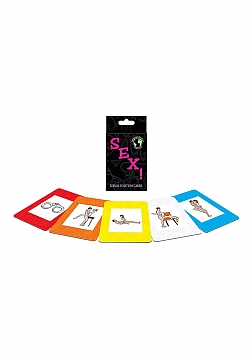 Each SEX! International card explicitly illustrates either a foreplay activity or a sexual position, and the color represents the intensity of the position.