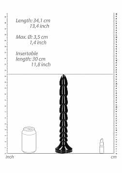 | Dimensions package | 11 x 44,30 x 8,80 cm | | Weight package | 474 gram | | Product dimensions | 34,1 x 7,9 x 7,9 cm | | Product weight | 385 gram | | Product diameter | 3,5 cm | | Insertable length | 30 cm | | Waterproof | Yes | | Splashproof | Yes | | Phthalate free | Yes | | Materials | PVC |