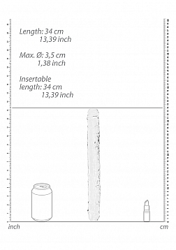 This model stands 13.4” (34 cm) tall, has an insertable length of 13.4” (34 cm) and has a girth of 1.4” (3,5 cm).