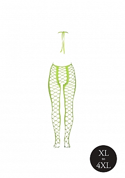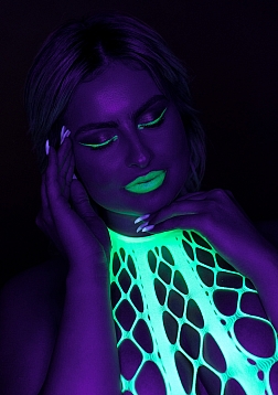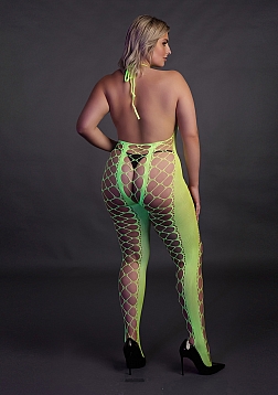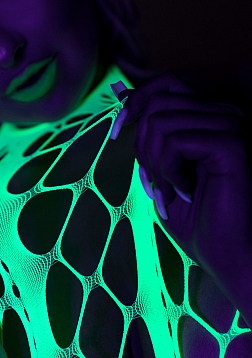 Unleash your inner goddess with this stunning UV activated lingerie. This gorgeous bodystocking has a showstopping halterneck and a low-cut back. An amazing party-wear that gives you that wow-factor and makes you stand out. The UV activated materials adds a touch of mystery and allure. Easy to fit because of the stretchy materials will make you light up the night.  Available in neon pink and neon green.   Sizes run from XS/ XL to XL/XXXXL