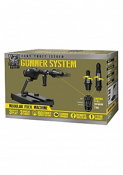Fort Troff's Gunner System is an impeccably designed 3-in-1 modular Fuck Machine for everybody, from beginners to extremely advanced players. Two vibrating and rotating heads can be can be used mounted to the full machine base, with the handheld turbo torque gun, or solo with the included handle. The base is adjustable to fuck you in any position you want. Once it's filled with water, sand, or the heavy material of your choosing, it'll stay steady on your bed or favorite playplace. The included remote control does it all; it controls the torque's thrusting speeds as well as the Tools' rotating beads and vibrating functions. Plus, the remote is magnetic and can attach to the Gunner's base so it never goes AWOL. With the included Vac-U-Lock adapter, there are hundreds of ways to play.