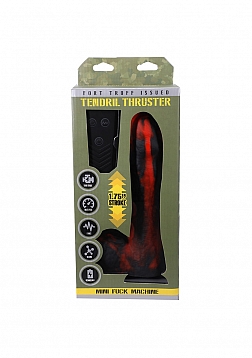 With the Tendril Thruster, it's all about the back-and-forth stroke to deliver the feel of a hard poundin' textured top. With a stroke of just under 2 inches, the Tendril Thruster nearly matches the stroke of big fuck machines. The super charged engines of the Tendril Thruster deliver the power to drive deep. We made sure it's strong enough to penetrate the tightest holes. The mushroom-shaped head is super soft n' cushy, for EZ entry, and the tendrils give extra stimulation. Controlling this power top is easyÂ… use the remote or the buttons on the balls. You have 2 speeds of fuckin', which offer slightly faster versions of the basic stroke. Unlike traditional fuck machines, ours also offers 8 vibration settings. Powered by a state-of-the art lithium battery, the run time is around 45 minutes. USB rechargeable, and it takes about 1.5 hours to recharge. Made of Premium Liquid Silicone, so you can use any lube. While the Tendril Thruster is not whisper quiet, we felt that an engine with a little roar was essential to deliver the thrust that piggy holes crave.