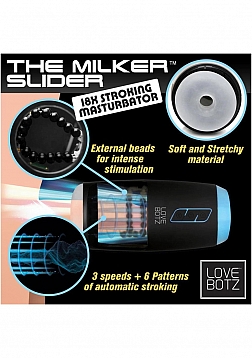 Give yourself a handÂ… by not having to use your own! With this Auto Milker stroker you can enjoy 3 speeds and 6b patterns of stroking! The rotating rows of beads help to stimulate you even further for more enhanced stimulation as you enjoy the stretchy, soft, TPE sleeve that comfortably wraps around and cushions your shaft. The plastic case is easy to hold and lets you angle it so you can enjoy it while sitting, laying down or standing! With a RPM of up to 220, you can really dial up or down the intensity with this full service stroking toy! The Auto Milker is also rated as IPX6 waterproof so you can take it into the shower for hot, wet sessions! Recharge using the USB cable provided between uses. Clean up is also easy! The inner sleeve is removable so you can wash the case and sleeve separately. Use warm water and mild soap on the sleeve and then spray with a toy cleaner before letting air dry. Only reinsert the sleeve once it's completely dry. Use a toy cleaner and soft cloth on the case when needed.