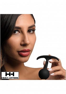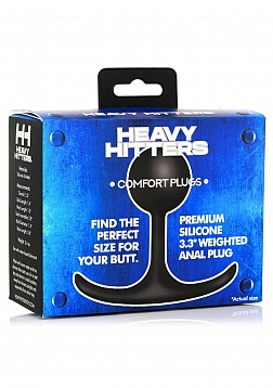 Learn what your ideal size is with these Heavy Hitter Comfort Plugs! The round ball serves as a large bulb for your backdoor to learn to pop inside. Test it out and see what your perfect size is! As you learn to take the big head inside of you, you can also learn to hold it there with the resistance from the solid, metal core! Enjoy the weighted center of the plug as it adds extra pressure inside you as you shift into different positions! Let gravity add to your pleasure as the plug pulls downward and train your sphincter muscles to hold it in place without letting it slip out! The plug is covered in silky soft, premium silicone; enjoy the phthalate-free, body-safe and plush material that is most compatible with water-based lubricants. The slim neck makes wearing it safe and the slim base makes room for your buttcheeks so you can easily and comfortably wear it for extended periods of time. To clean it, push it out and wash it with warm water and mild soap, then spray with a toy cleaner. Store out of direct sunlight and do not let it come into direct contact with other silicone toys or non-anal toys.