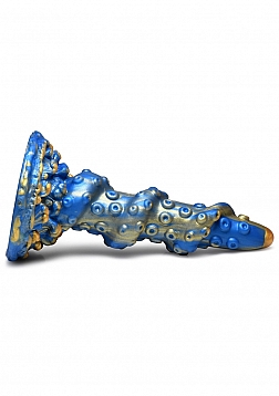 This Kraken Silicone Dildo is here to add to your deviant, deep-sea fantasy collection! With a deep blue and shimmering gold color, it's automatically an eye-catcher. The wide base doubles as a suction-cup base for hands-free rides. It can also be used with your lover when combined with a compatible strapon harness! At the base are countless, small, wave-like features that look as if they're crashing against the titanic kraken rod! As the dong emerges from the base, it has a twisted whorl that swirls up towards the tip along with several, small octopus-like suckers. The tip is tapered just enough to help with insertion but, after you get the tip in, you'll be feeling all the textures this kraken offers! Perfect for roleplay, cosplay, fantasy kink or just as a unique and satisfying toy for you or your partner! Made out of premium silicone, this dong is phthalate-free and body-safe. Use only with water-based lubricants. To wash, use warm water and mild soap then spray with a toy cleaner and pat dry.