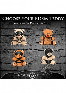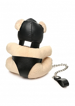 Buy this as a gift for yourself or others! It makes a great gag gift or, in this case, a gimp gift! This little hooded, gimp bear has light peach fur, is dressed in PU leather panties and a hood. Attached to its collar is a metal chain leash. What better way to show your kinky side than with a harmless, adorable, bondage bear? Attach it to your keychain or clip it to a bag! Made out of polyester, PU faux leather, plastic and nickel-free metal.