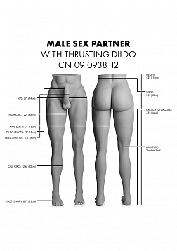 Measurements: Armature: Stainless Steel Height: 43 in / 110 cm Waist: 25 in / 63 cm Hips: 37 in / 94 cm Thigh Circum.: 22 in / 56 cm Calf Circum.: 12.6 in / 32 cm Crotch to Ground: 33 in / 84 cm Anal Depth: 7 in / 18 cm Dildo Length: 7 in / 18 cm Penis Diameter 1.6 in / 4 cm Foot Length: 8.7 in / 22 cm Weight: 62 lb / 28 kg