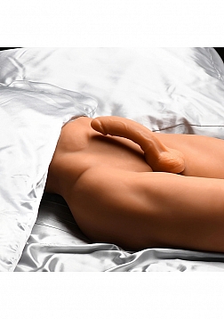 After you bring him home, you can finally indulge in all the sexy play you've been dreaming up. Your fantasies and dreams get to take life and you're ready to explore something new. Maybe you've never tried doing things with a man before, or maybe you want to enjoy it more but don't have a partner right now. Whatever your story, this doll is ready to be placed in countless positions! You bring him onto the bed, his 62 lbs of weight feeling solid and firm in your arms. Covering his hips with a blanket, you can pretend his upper half is hidden behind the blanket and be free to imagine the man of your dreams, one that you've already been fantasizing about. You grab the water-based lubricant for his rod, then turn on the remote so it pairs with the dildo. You start with him sitting, legs stretched out, his torso leaning against the headboard. Your hands gripping the headboard for balance, you start to lower on top of him, taking it slow. With the tip inside, you turn on the warming function and feel the pleasant spread of heat inside of you, then pair it with vibration. You get a little deeper, opening up, and you take it slow as you ride him. You get more and more open and finally you're ready to take his thrusting. You turn around, positioning him on his knees, and get into doggy style. You back up into him and turn on the thrusting mode and start to moan as his rod thrusts deeper and deeper into you, hitting your sweet spot and making you quiver in pleasure! You find yourself reaching the edge already so you back offÂ… After all, there are so many more positions to try before you're done with your fantasy man!